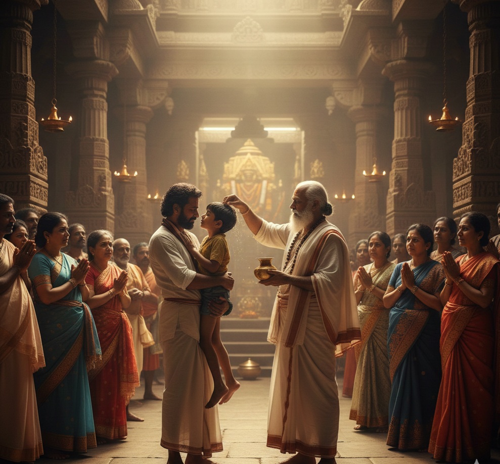 तभी, मंदिर के एक पुजारी ने बच्चे पर भगवान का चरणामृत छिड़का। मंगल आरती के मंत्रों की गूँज के बीच, एक अविश्वसनीय घटना घटी: