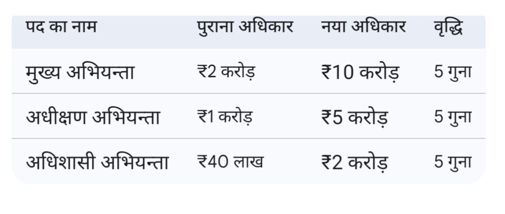 सिविल कार्यों के लिए, अधिकारियों के वित्तीय अधिकारों की सीमा अधिकतम पाँच गुना तक बढ़ाई जाएगी।