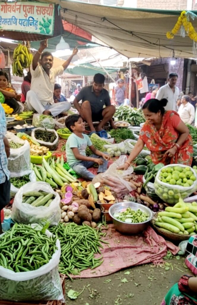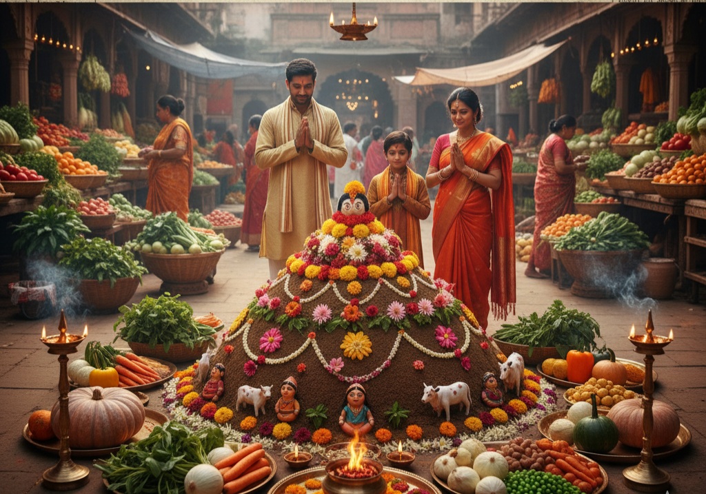 गोवर्धन पूजा का एक अभिन्न अंग है ‘अन्नकूट’। इसमें कई तरह की मौसमी सब्ज़ियों को मिलाकर एक विशेष भोग तैयार किया जाता है, जिसे भगवान गिरिराज जी को अर्पित किया जाता है।आगरा की सब्ज़ी मंडियों में आज इस अन्नकूट के लिए रंग-बिरंगी सब्ज़ियों की रौनक देखने लायक है। शाहगंज और रामनगर जैसी मंडियों में सुबह से ही भक्तों की भीड़ उमड़ रही है। एक सब्ज़ी विक्रेता ने बताया, “अन्नकूट की सब्ज़ी की कीमत वैरायटी और मात्रा के आधार पर ₹150 से ₹200 प्रति किलो तक है। आज अन्नकूट की बिक्री सामान्य दिनों से अधिक होती है, जिससे अच्छी आमदनी होती है।”हालांकि, कुछ खरीदारों का कहना है कि पिछले साल के मुकाबले इस बार सब्ज़ियां कुछ महंगी हैं, लेकिन गिरिराज जी की पूजा के लिए उन्हें खरीदना आवश्यक है।